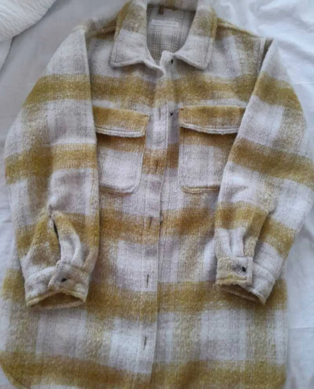 Camisa de franela a cuadros con botones, ideal para un look casual y abrigado. Posee bolsillos en el frente y puños con botón. talle 14 de niña, como para s de mujer