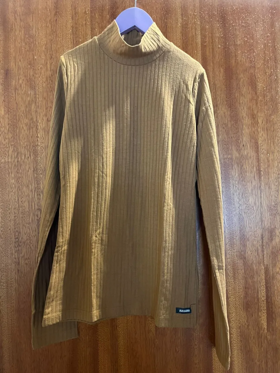 Remera manga larga de cuello alto, con un diseño acanalado que le da una textura única. Ideal para un look casual y moderno, perfecta para los días frescos de entretiempo o para combinar con otras prendas en invierno.