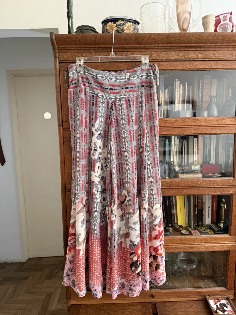 Palazo estampado, con cintura elastizada y detalles de flores y motivos geométricos. Ideal para un look boho chic o casual.