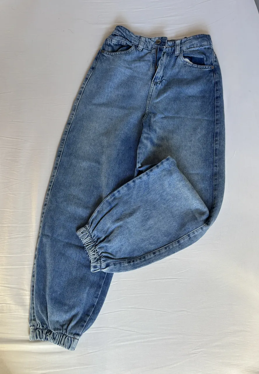 Jean tiro alto con puño elastizado en la botamanga. Modelo súper cómodo y canchero, ideal para el día a día. Combinalo con tus tops favoritos.