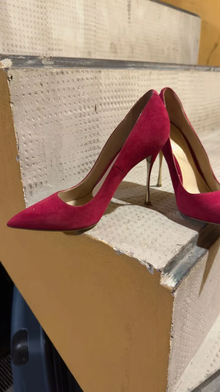 Zapatos de taco alto color fucsia, con punta fina y taco metálico. Ideales para eventos formales o una salida elegante.