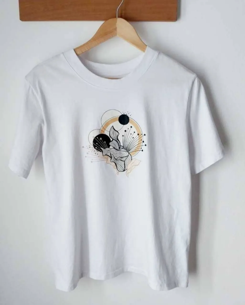 Remera blanca de manga corta. Talle M. Busto: 50cm. Largo: 62cm.