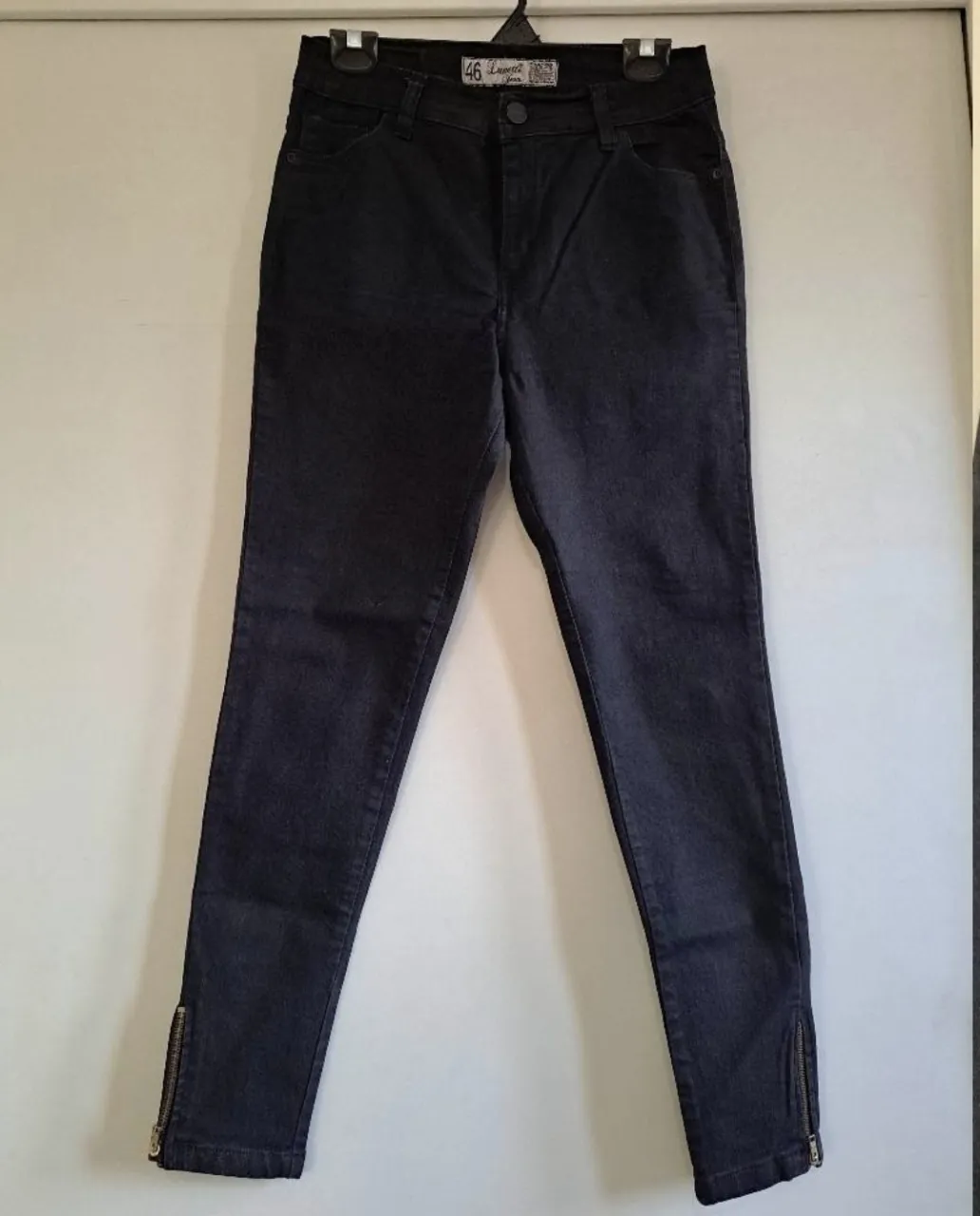 Jean tiro medio (elastizado) con cierre en los tobillos. Un básico súper canchero para armar looks modernos. -Talle 46-.