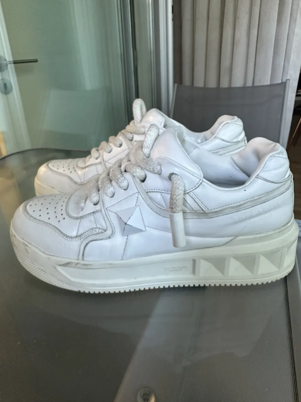 Zapatillas Valentino, blancas de cuero con detalles de costuras y estrella lateral. Suela gruesa con diseño de tachas.Originales pero sin caja ni plantilla.