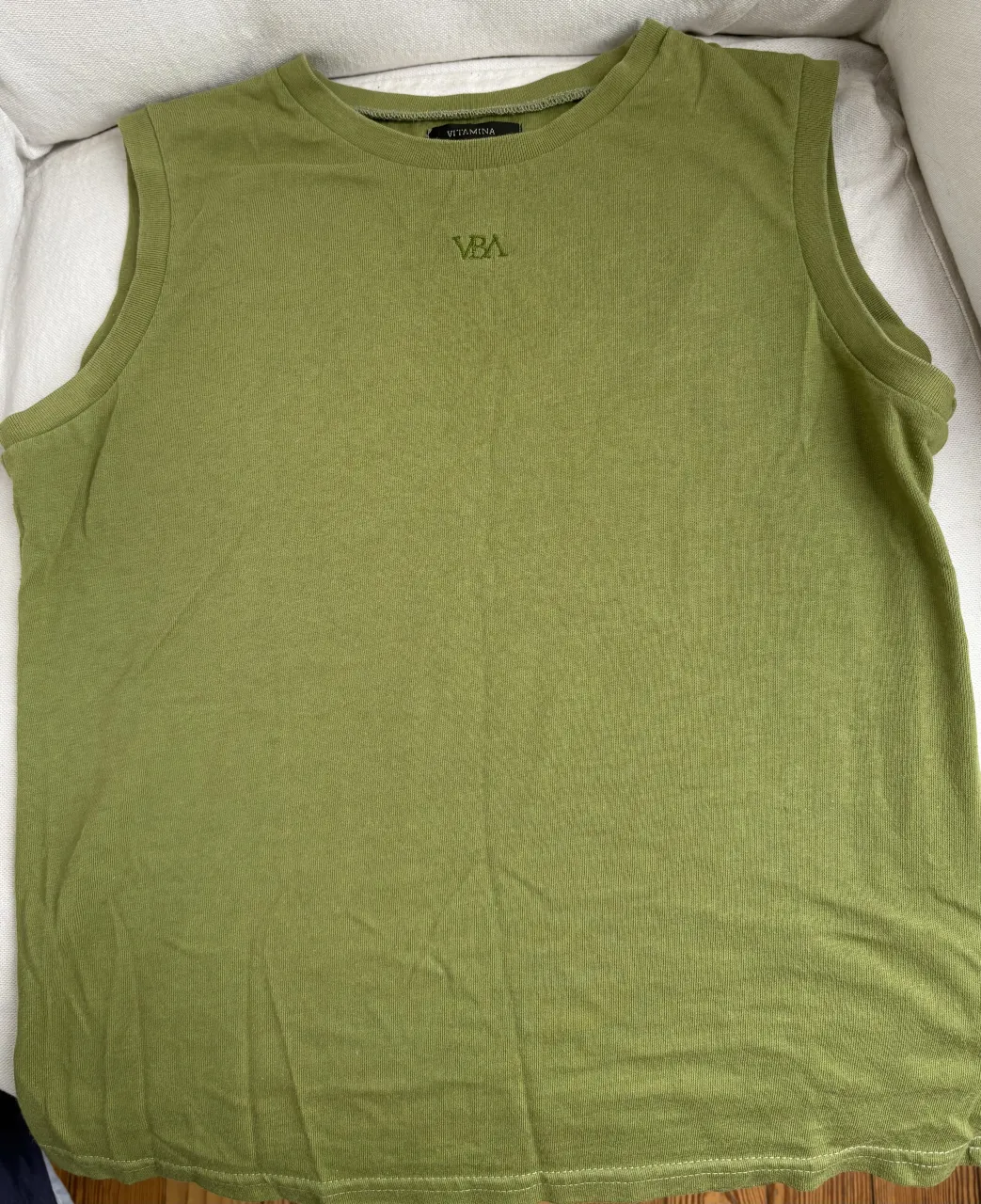 Musculosa 100 % algodón color verde. Posee un pequeño logo bordado en el frente.