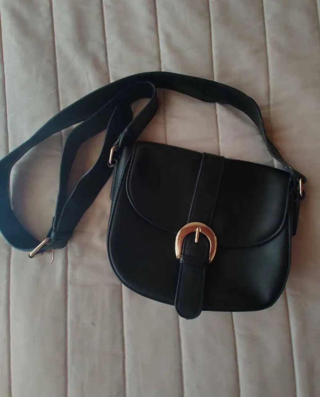 Bandolera negra con hebilla dorada, TodoModa, tiene un solo compartimiento