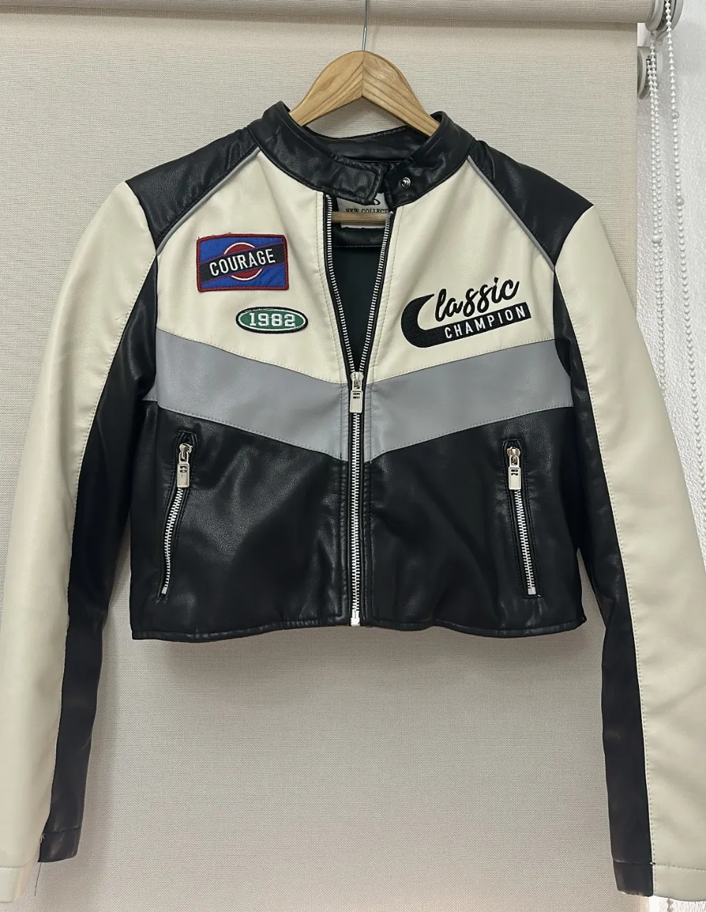 Chaqueta de manga larga estilo "de carreras" súper canchera, con un diseño retro y moderno a la vez. Con estampado gráfico de letras y bordados que le dan un toque único.