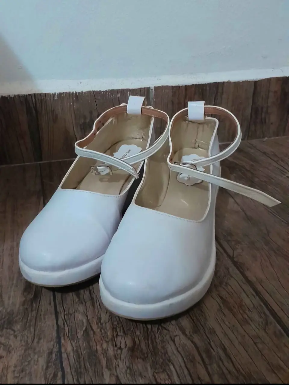 Lindos zapatos blancos de plataforma con pulsera al tobillo, ideales para un look elegante y cómodo. Perfectos para cualquier ocasión especial.