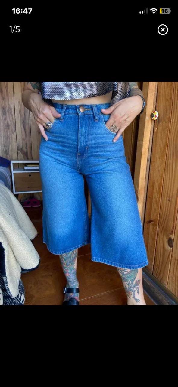 Jean ancho de tiro alto, estilo culotte. Un básico moderno y cómodo para tu día a día. Combinalo con tops o remeras para un look canchero.