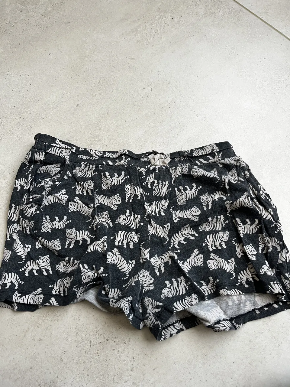 Shorts de algodón con estampa de tigres blancos sobre fondo negro. Cintura elastizada.