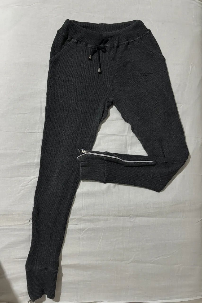 Pantalon de morley gris oscuro, tiro medio y detalles de cierre en los tobillos. Súper cómodo, ideal para un look relajado.