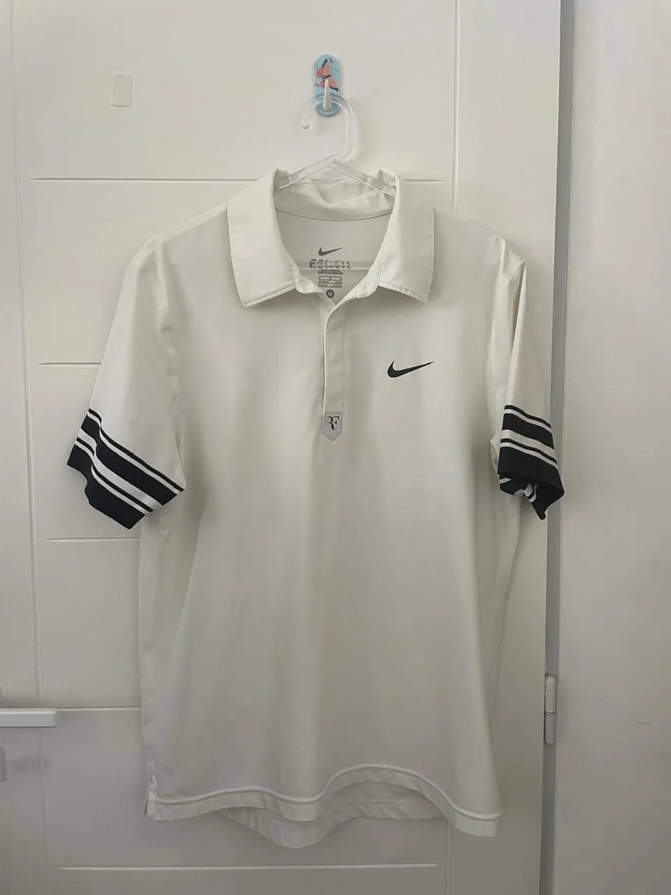 Remera polo blanca de manga corta con detalles en negro en los puños. Ideal para un look deportivo o casual.
