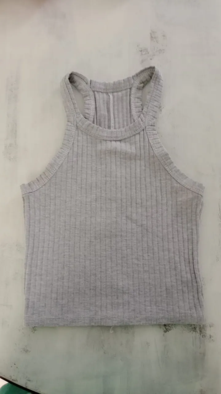 Musculosa gris de morley, con cuello redondo. Perfecta para un look casual.