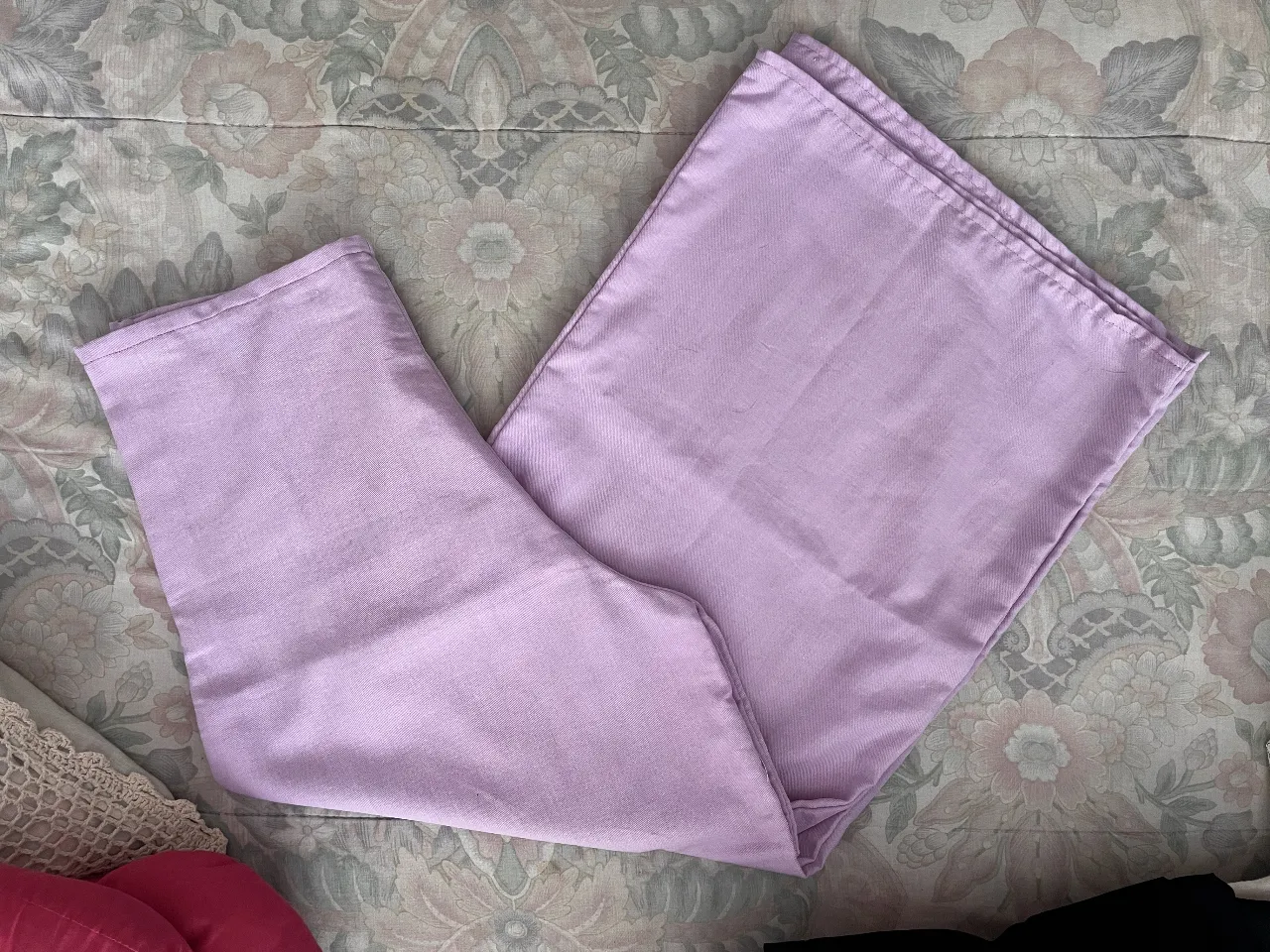 Pantalón ancho tiro alto color lila, con cierre y bolsillos. Ideal para un look moderno y cómodo.