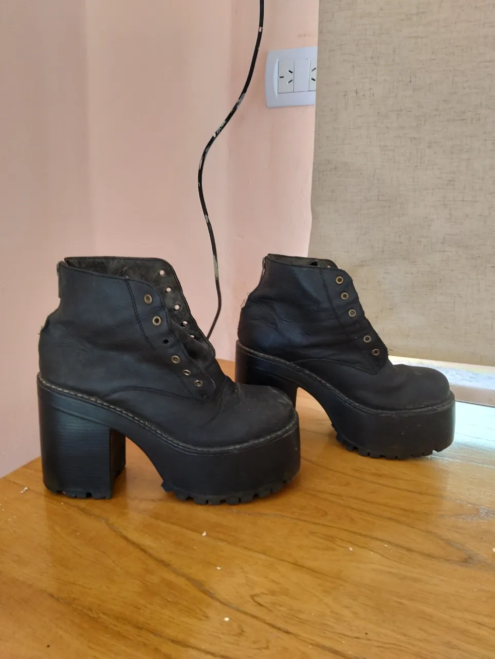 Botas de plataforma súper cancheras, ideales para darle un toque audaz a cualquier look. Tienen un diseño robusto con taco grueso y cierre lateral para mayor comodidad. Perfectas para destacar tu estilo.