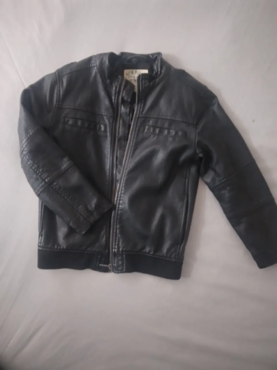 Campera de cuero negra, estilo biker, con cierre al frente y bolsillos. Ideal para un look canchero y moderno.