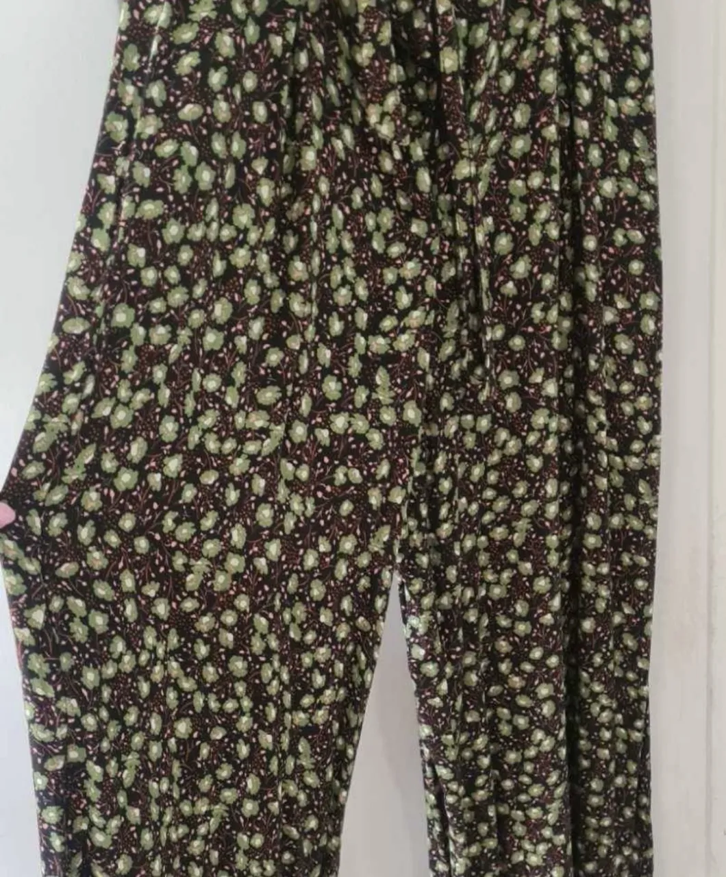 Pantalón palazzo estampado floral, tiro alto con cordón ajustable. Ideal para un look fresco y canchero.