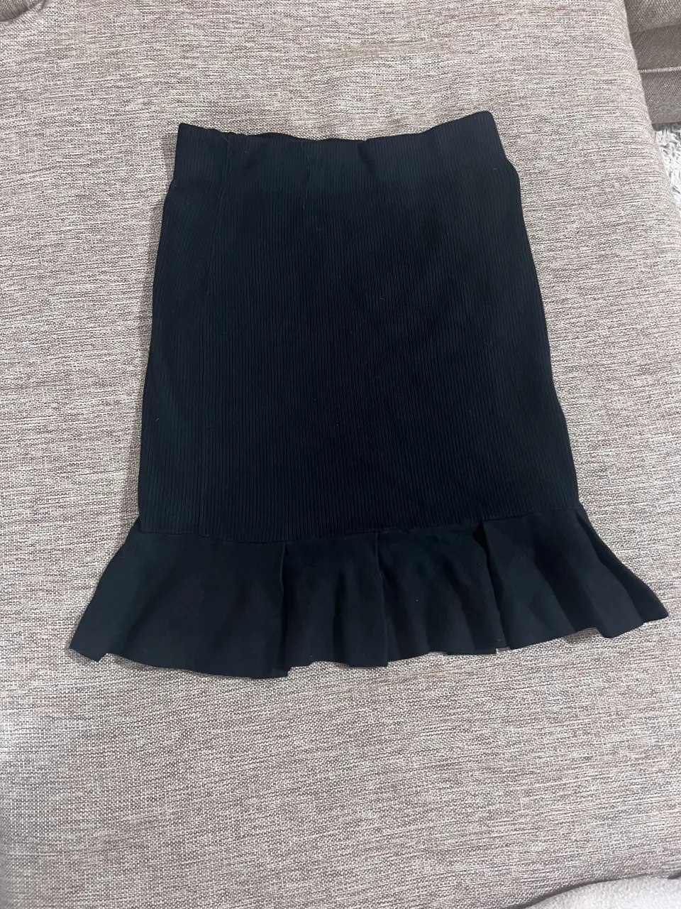 Pollera negra de tejido acanalado con volado en la parte inferior.
