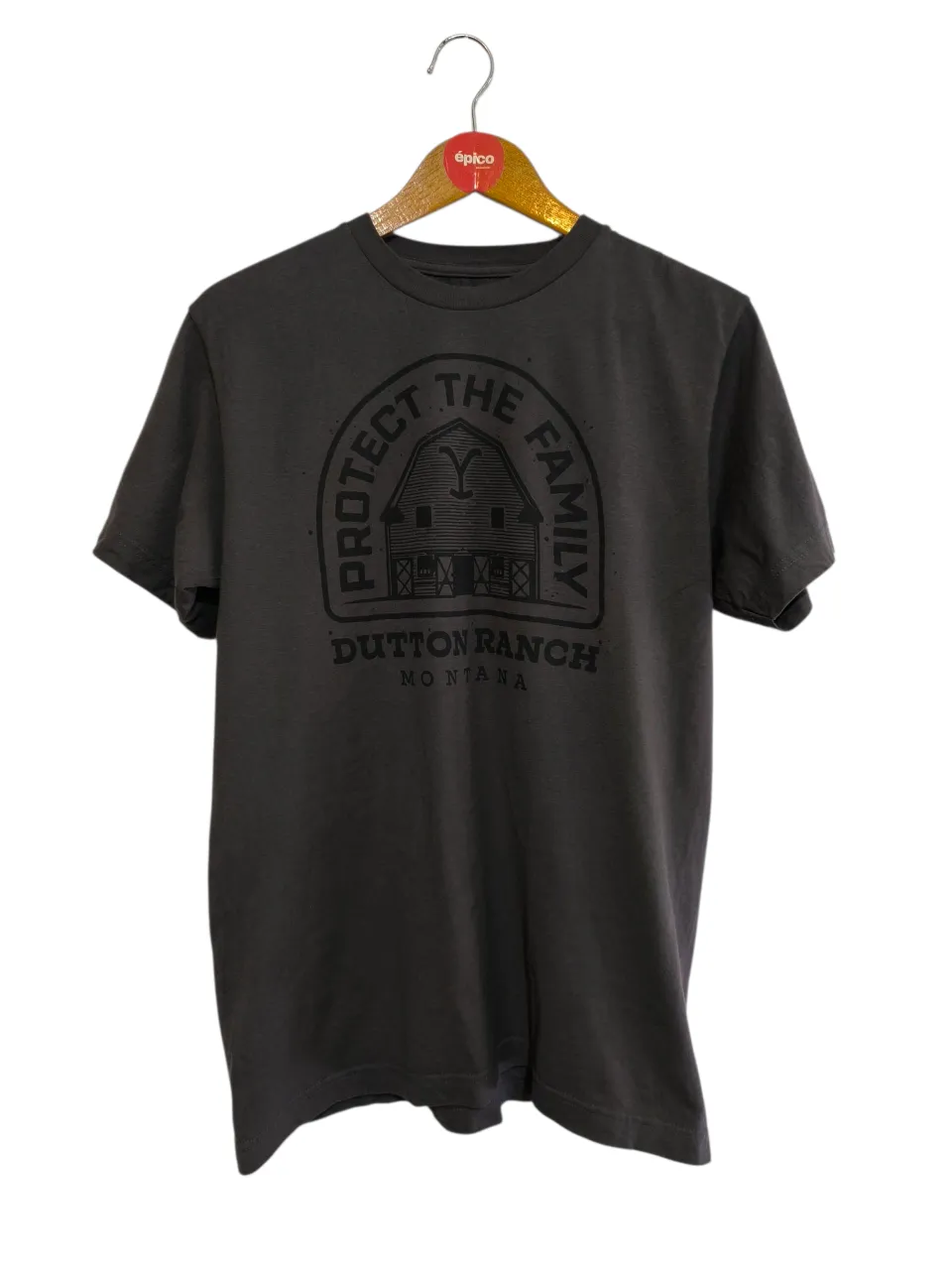 Remera gris oscura con estampa "Protect the Family" de Dutton Ranch, Montana. Ideal para fans de la serie Yellowstone. Medidas: Ancho sisa 49 cm - Largo 68 cm.