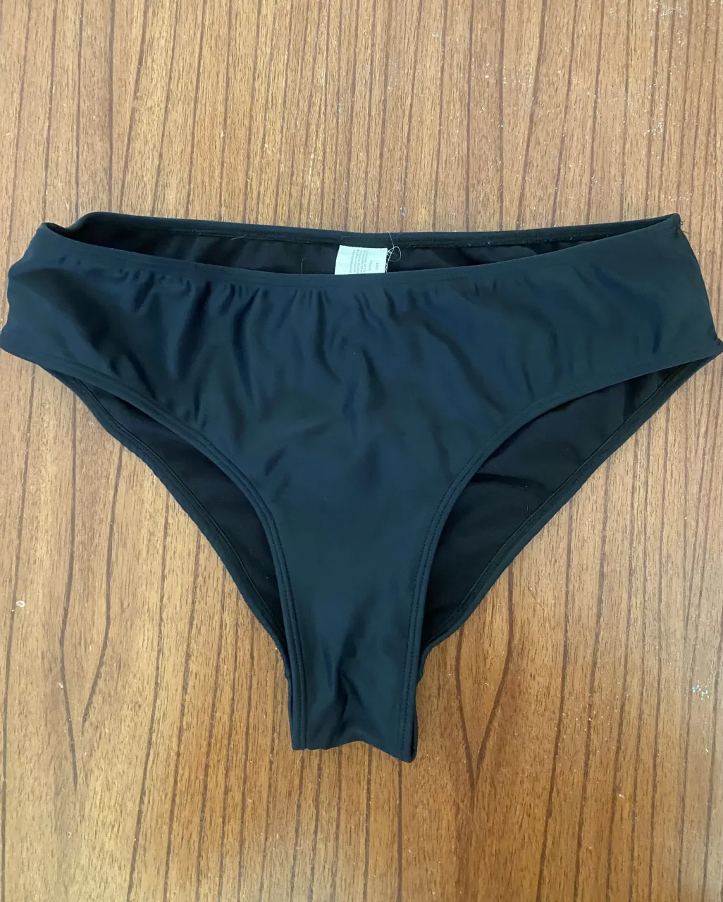 Bombacha de traje de baño tiro medio alto, color negro. Perfecta para combinar con tu bikini favorita o usarla sola. Ideal para disfrutar del sol y el mar con estilo y comodidad. talle aproximado, pidan medidas