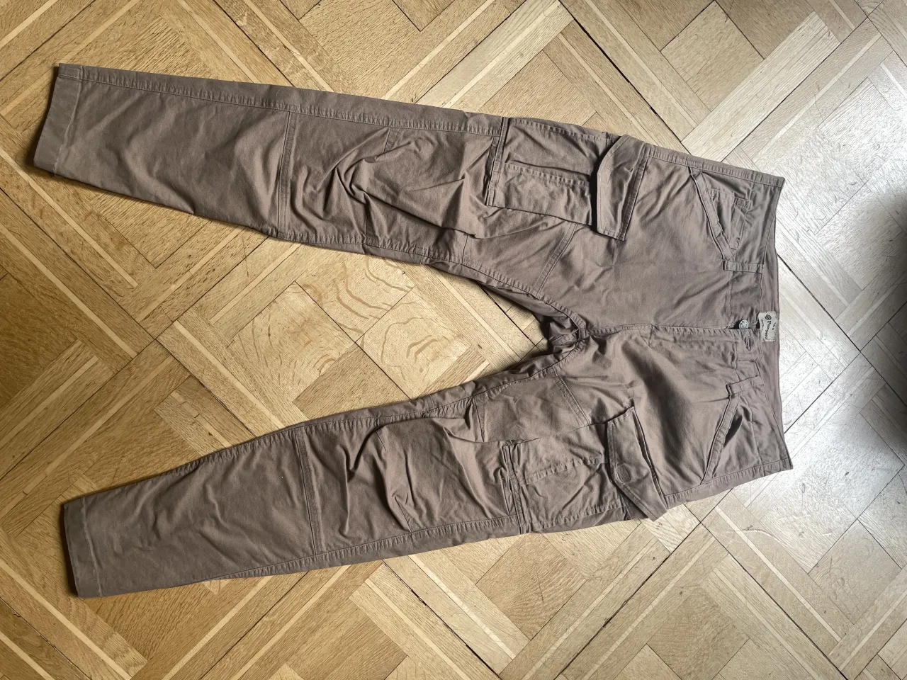 Pantalones Pampero cargo de color marrón. Tienen múltiples bolsillos con solapa en los laterales de las piernas.
