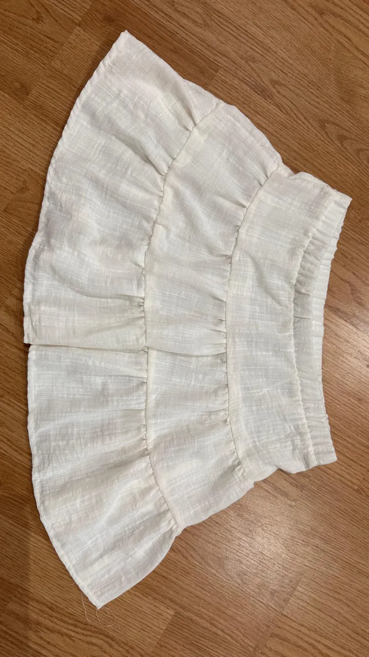 Pollera corta blanca con volados y cintura elastizada.