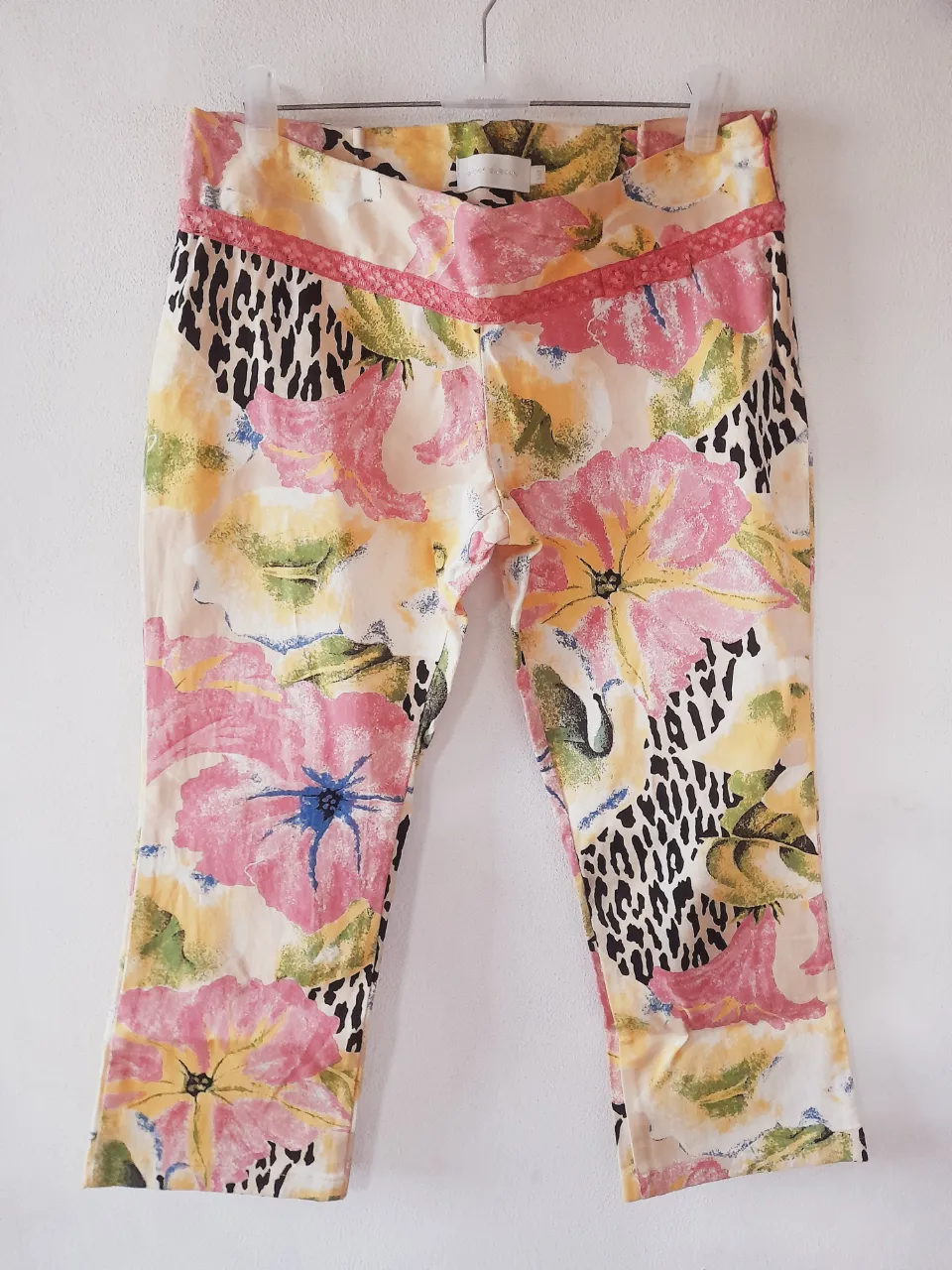 Pantalón pescadores Ricky Sarkany super cancheros, 100% algodón con un estampado floral vibrante y toques de animal print. Ideales para armar un look relajado y con onda para el día a día o un paseo de verano. ¡Comodísimos y con mucho estilo! Tienen unas pinzas realizadas en la cintura que se pueden quitar. Cintura:39cm. Cadera:48cm. Tiro:21/27cm.