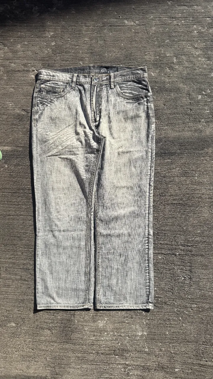 jean vintage gris desgastado marca axel jeans diseños en los bolsillos traseros cintura 47 largo 105 botamanga 25 estado 9/10