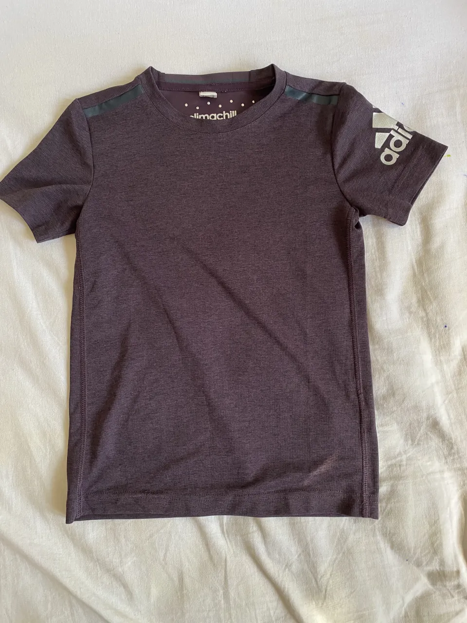 Remera deportiva de manga corta con logo de Adidas en la manga.