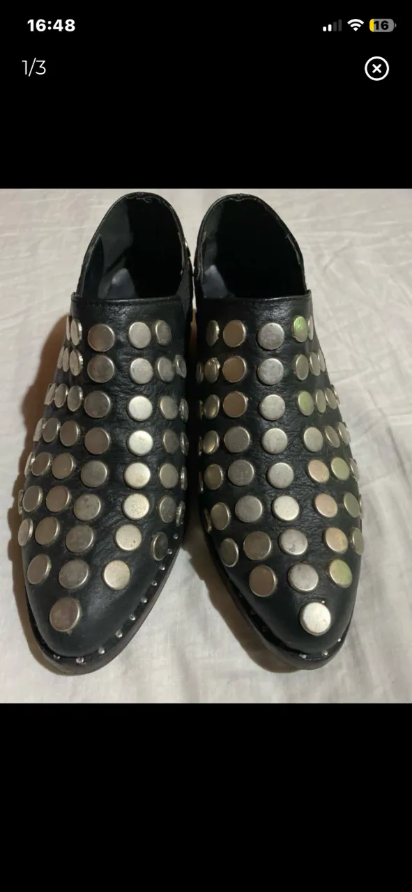 Botitas negras con tachas plateadas y doradas. Diseño rockero y canchero, perfectas para darle un toque audaz a cualquier look.