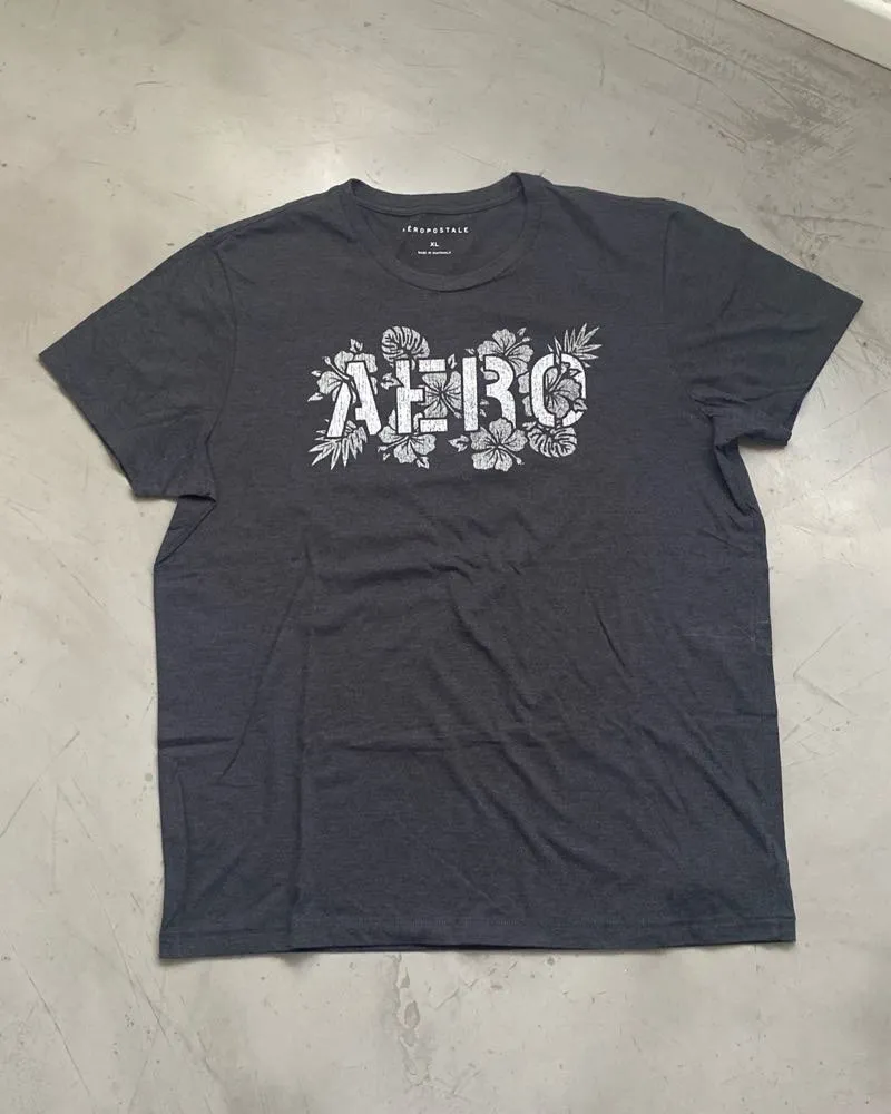 Remera gris oscuro con estampa floral en blanco en el frente. Nueva, sin uso. Medidas: largo 77cm - axilas 60cm - largo manga 20cm - espalda 50cm