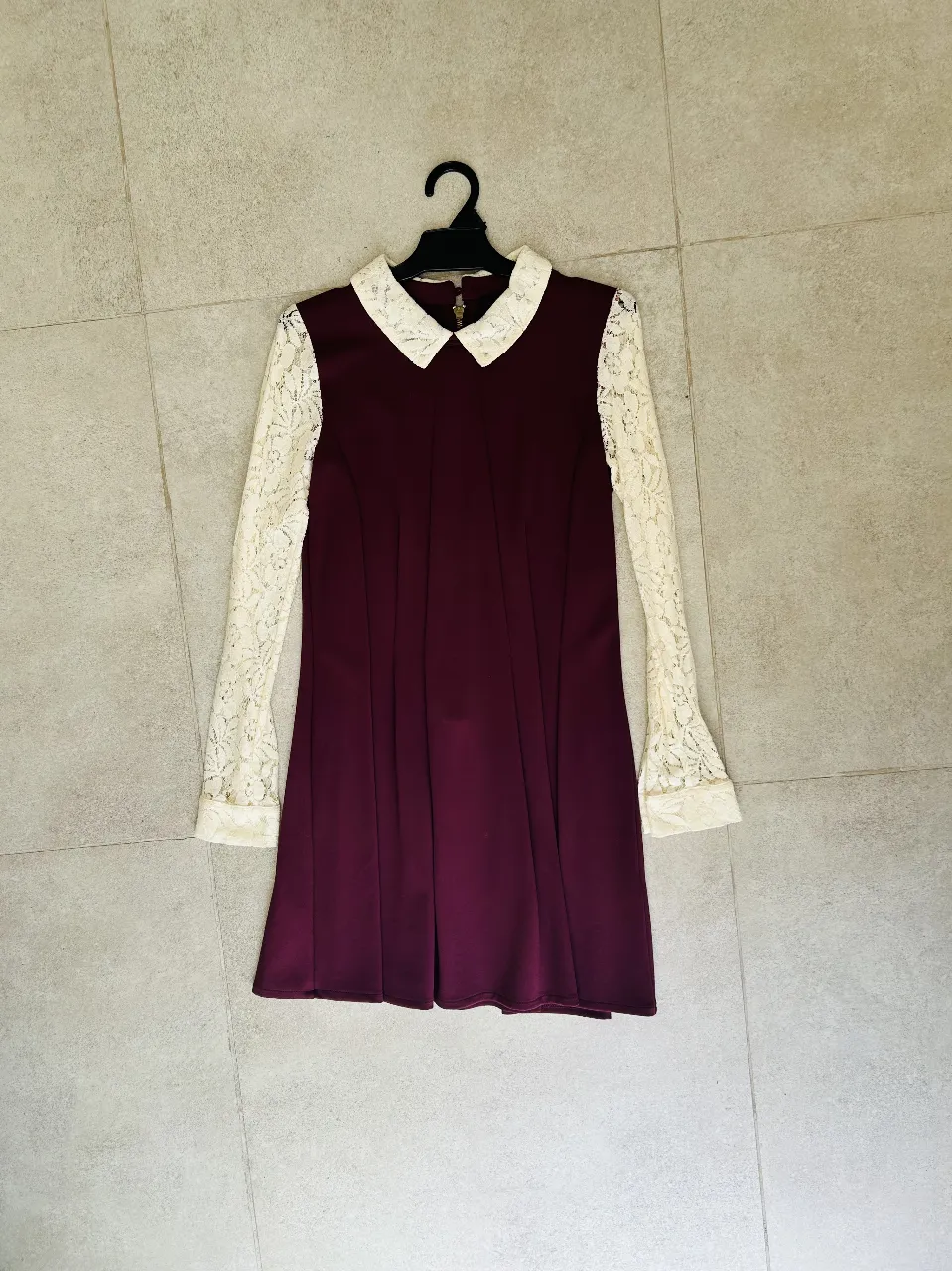 Vestido de manga larga con detalles de encaje en mangas y cuello. Diseño elegante y femenino, ideal para ocasiones especiales o salidas. Impecable Medidas aprox: Hombro a hombro: 40 cm Largo total: 82 cm Sisa: 37 cm Largo manga: 63 cm Tiene incorporado manga de encaje y cuello de encaje