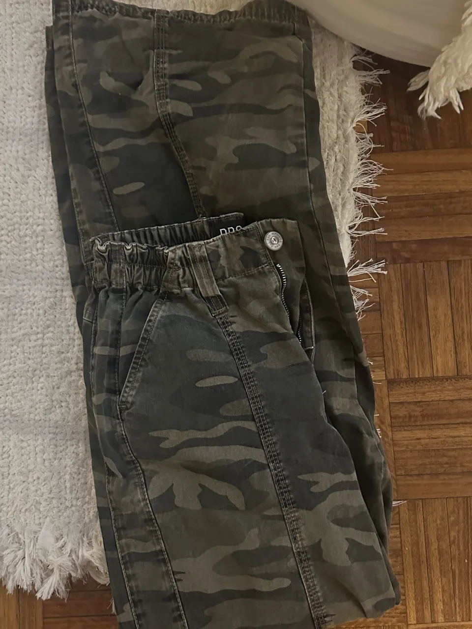 Pantalones cargo de camuflaje con cintura elastizada y bolsillos delanteros.