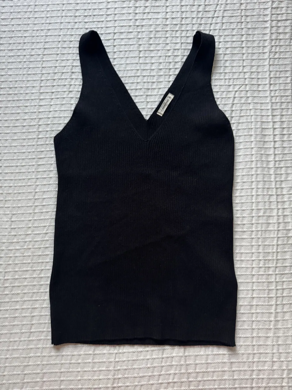 Musculosa negra de tejido acanalado con escote en V.