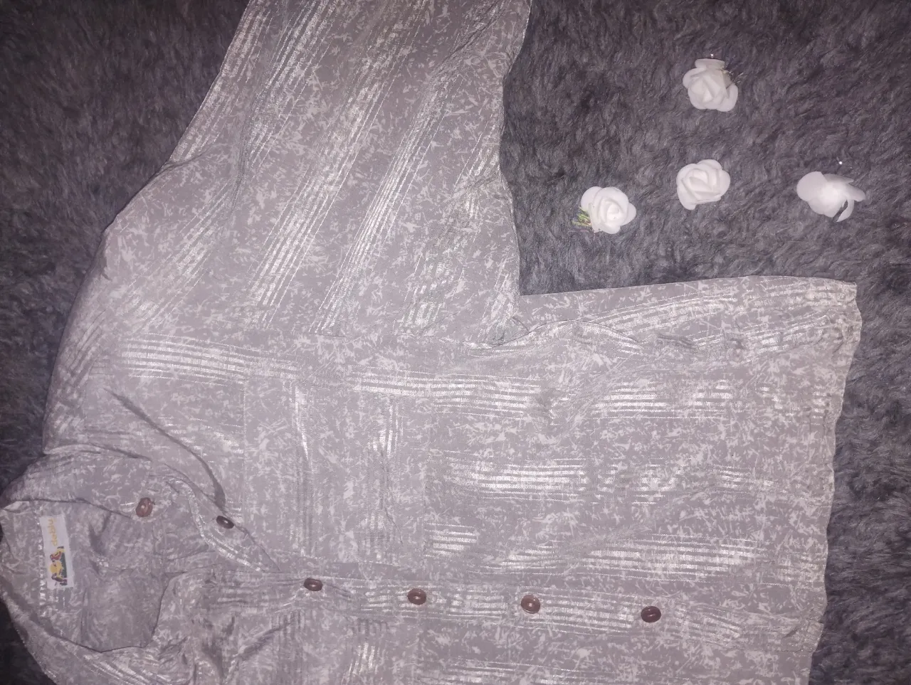 Camisa de vestir VINTAGE con hombreras, estampado abstracto y detalles en blanco. Posee botones al frente y cuello clásico. Ideal para un look elegante y moderno.