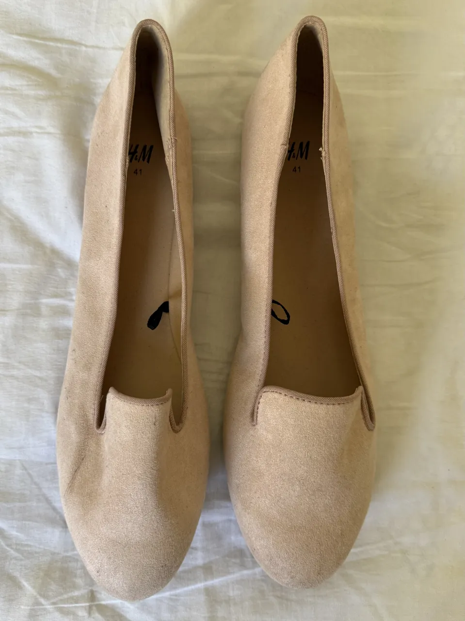 Par de mocasines de gamuza color nude y negro. Talle 41.