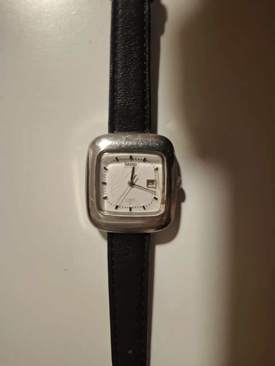 Reloj Seiko hi beat automático vintage con malla de cuero negra. Es un modelo clásico y elegante.
