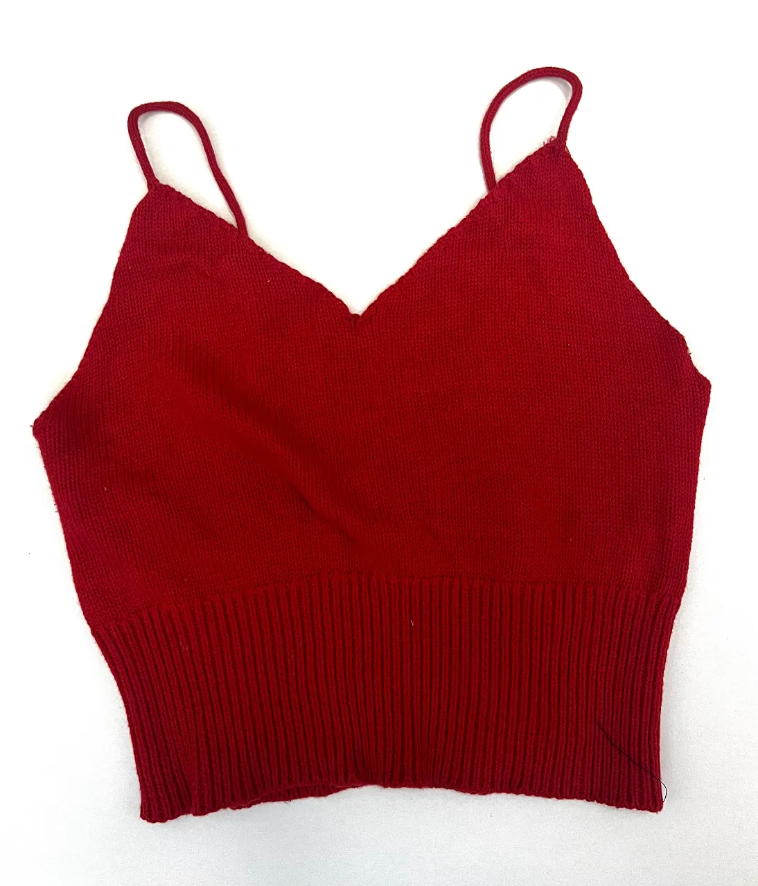 Top de tejido rojo vibrante, con escote en V y breteles finos. La parte inferior cuenta con un elástico acanalado que se ajusta a la cintura, dándole un toque moderno y canchero. Ideal para combinar con jeans o faldas.