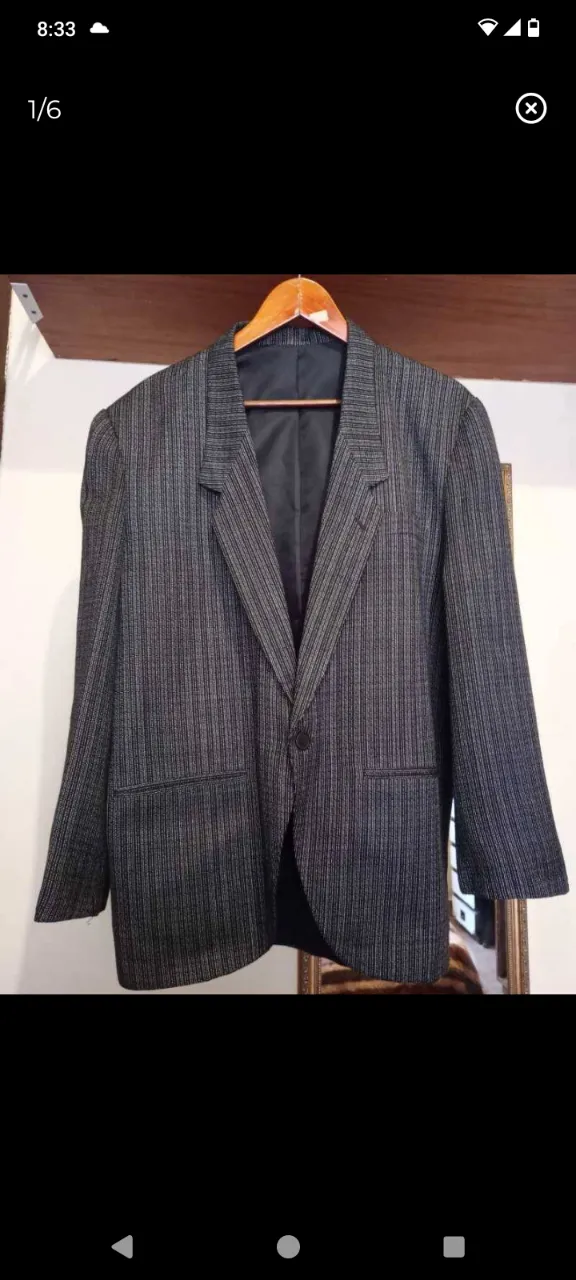blazer rayado m/l de rayas verticales, color oscuro y estilo clásico/formal. algodón 65% y poliester 35%, con forro en negro. medidas: largo 75cm, anchi y de sisa a sisa 57cm, hombros 50cm, largo de manga 61cm.