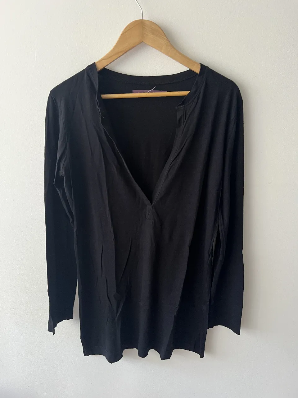 Remera negra de manga larga con escote en V pronunciado. Perfecta para un look casual y cómodo.
