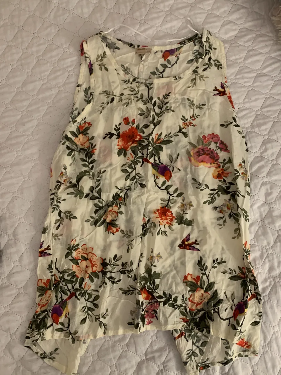 Musculosa estampada con flores y pájaros. Ideal para un look fresco y primaveral.