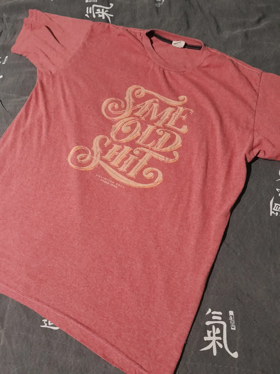 Remera de algodón color salmón con estampa "Same Old Shit" en la parte delantera. Ideal para un look casual y descontracturado.
