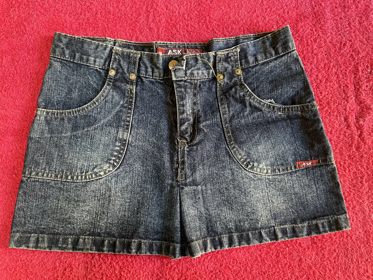 Pollera de jean tiro alto/medio vintage, con bolsillos delanteros y traseros. Lavado desgastado , detalles en costura y bolsillos. (talla grande)
