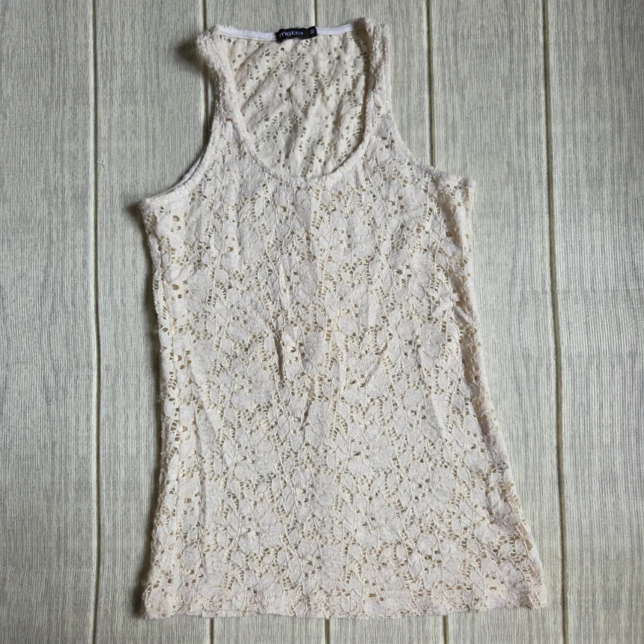 Musculosa de encaje color crudo, ideal para un look boho o romántico. Perfecta para usar en verano o en ocasiones casuales.