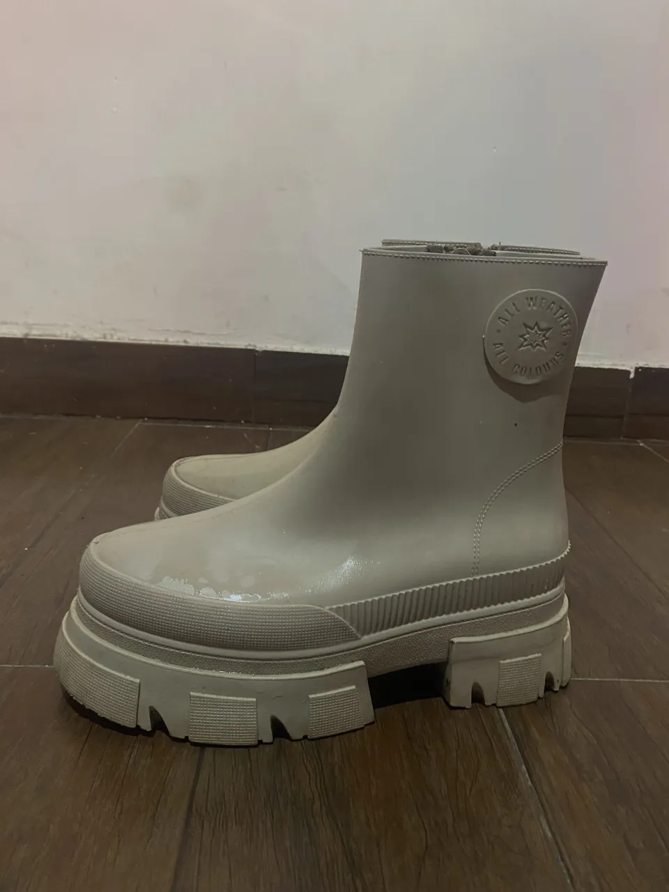 Botas de lluvia súper cancheras y cómodas, perfectas para días de lluvia o para darle un toque urbano a tu look. Tienen una suela gruesa y diseño moderno.