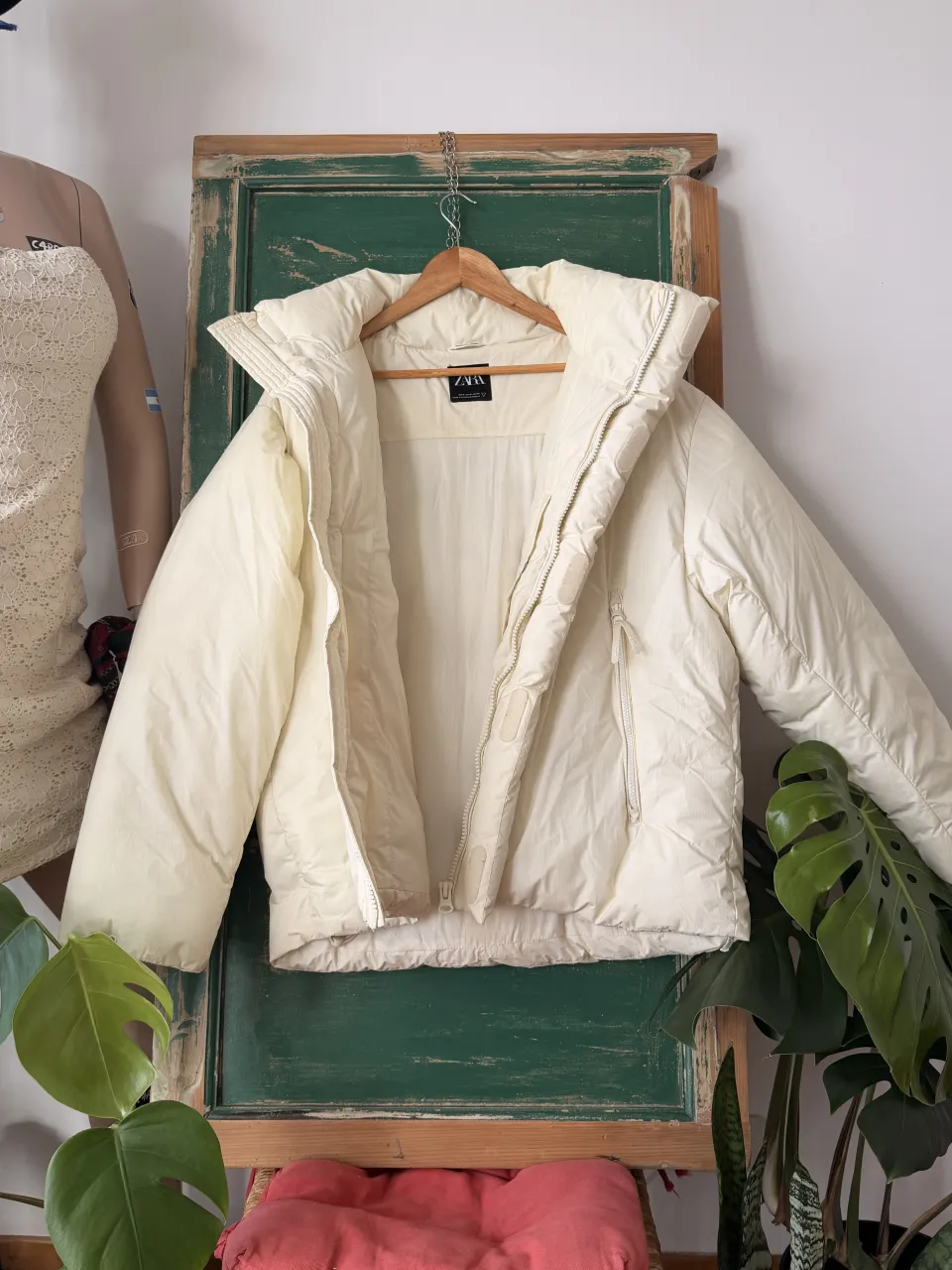 Campera acolchada blanca de Zara, súper canchera y abrigada. Ideal para los días frescos, con cuello alto y bolsillos con cierre. Un básico que no te puede faltar.