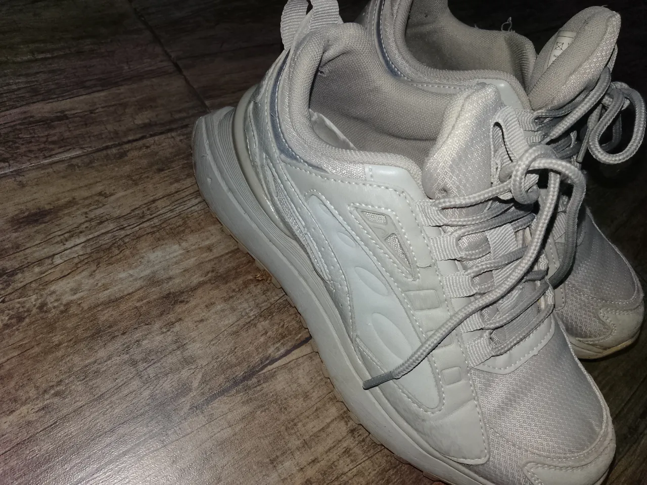 Zapatillas deportivas grises con cordones. Diseño moderno y cómodo.