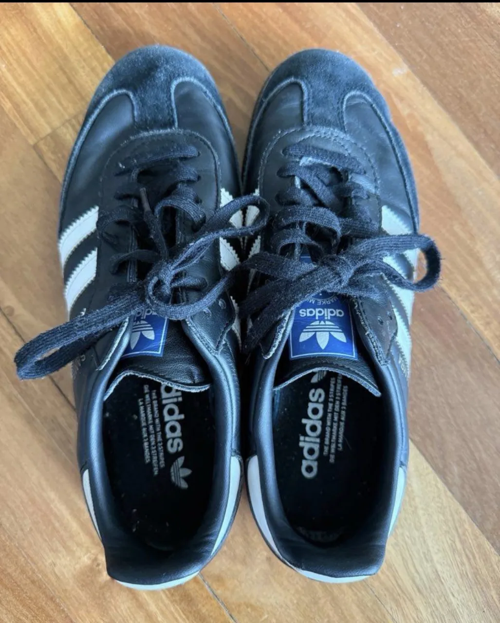 Zapatillas Adidas Samba negras con detalles blancos. Ideales para un look casual y deportivo.