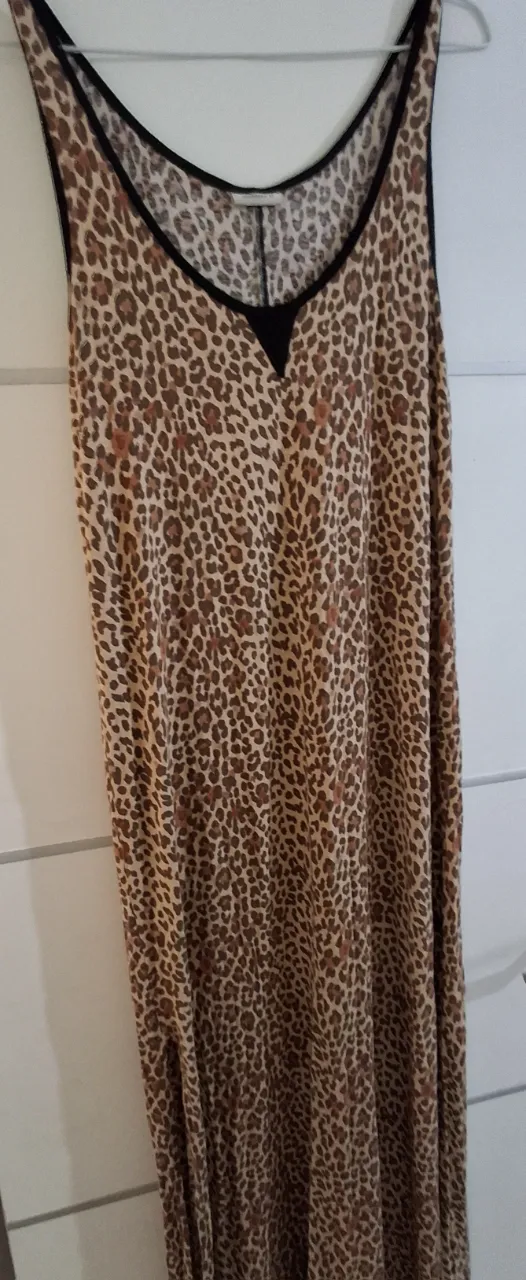 Vestido largo estampado de leopardo con cuello redondo y tirantes.