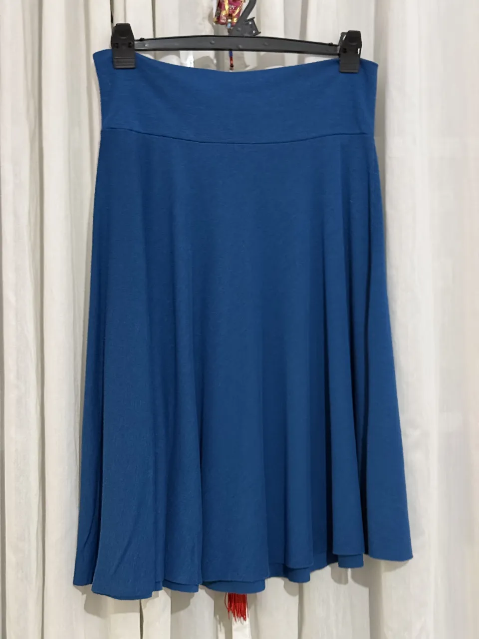 Pollera larga azul, con cintura ancha y caída fluida. Ideal para un look casual o elegante, súper cómoda y versátil.